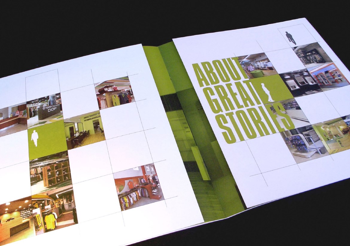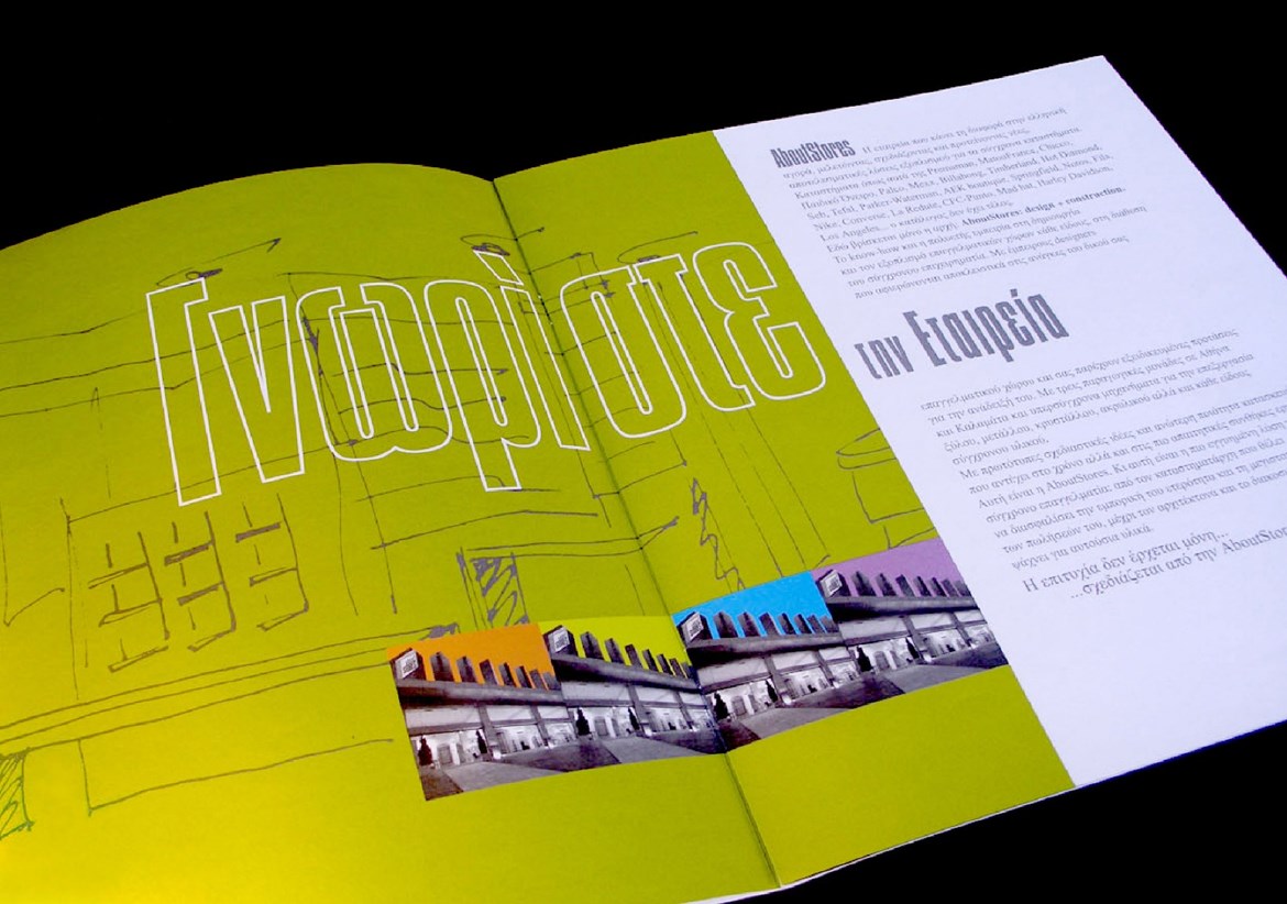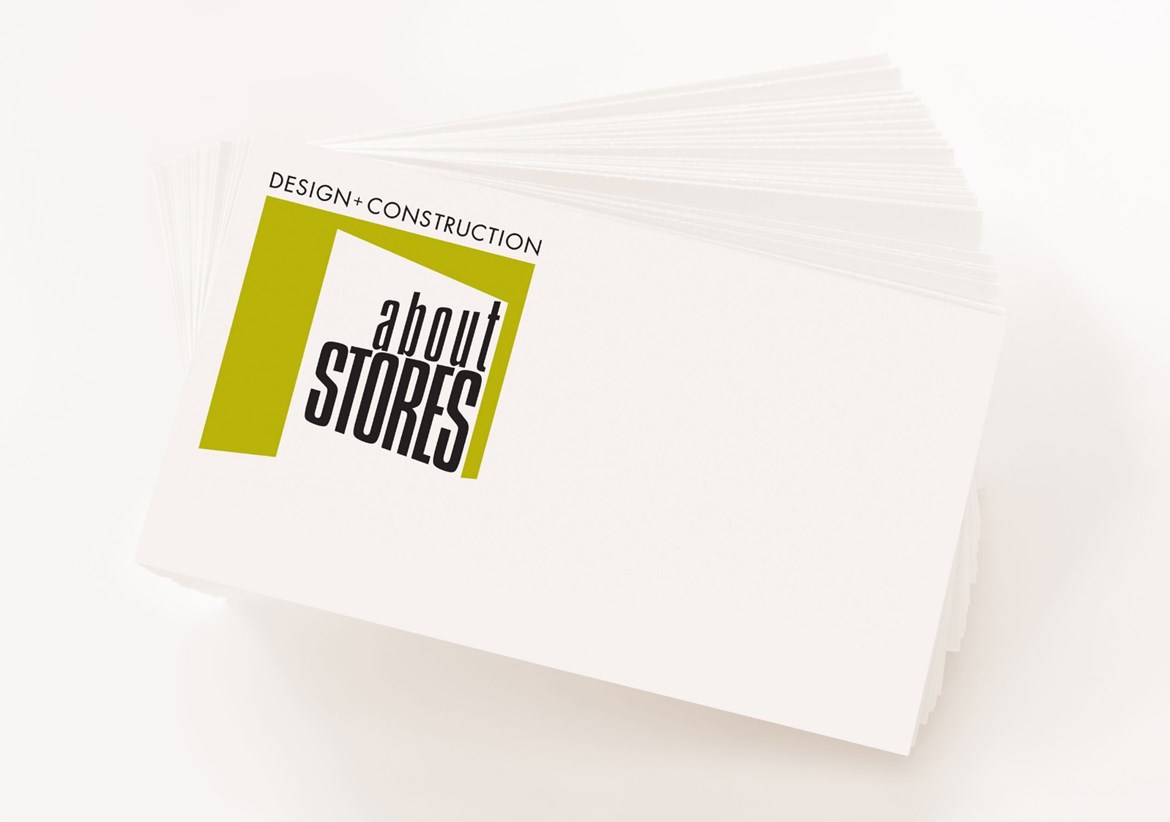 Logo design, brochure design, print material for About Stores. About Stores is a construction company, specialized in retail spaces.