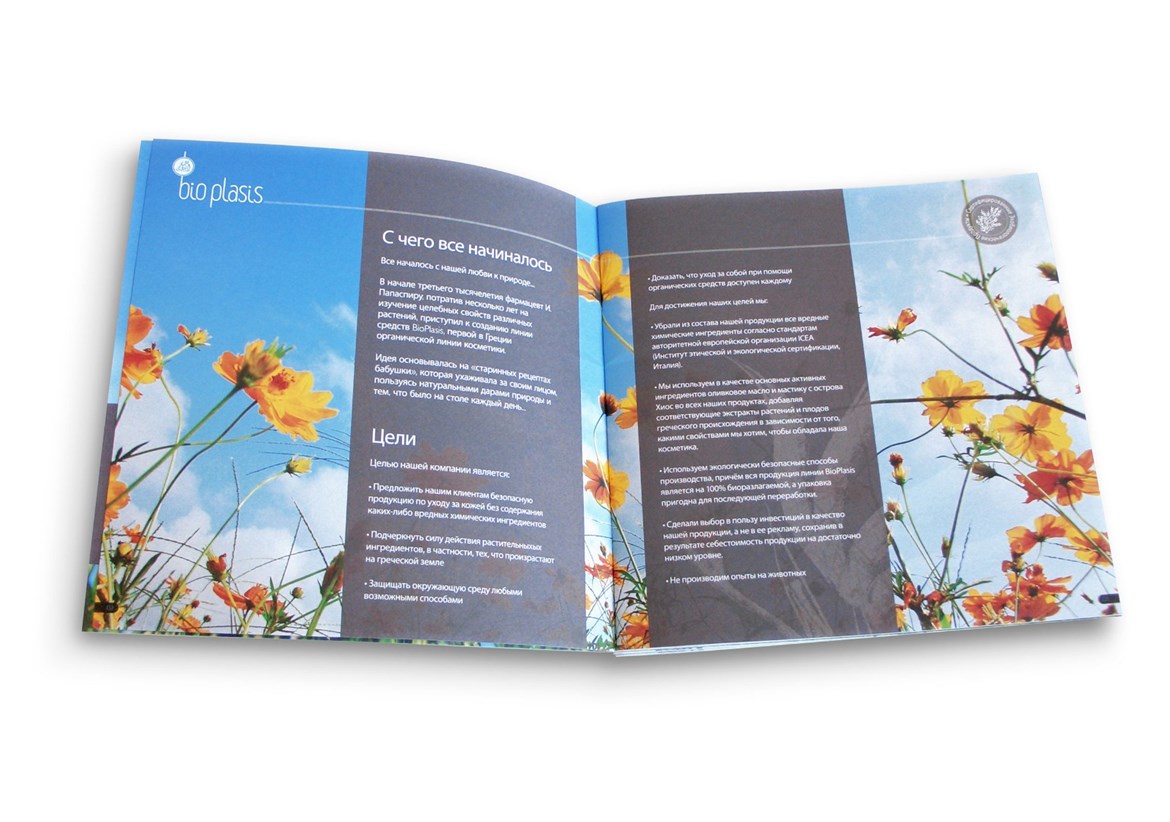 Visual identity, branding & packaging, brochure design, for Bio plasis cosmetics. All Bio plasis cosmetics are eco/bio products.