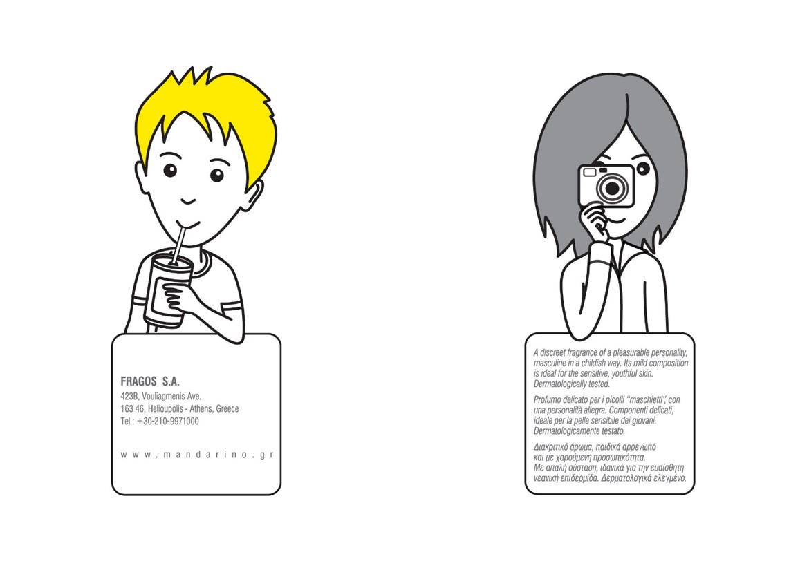 Identity, branding & packaging, illustration, naming, p.o.s. material, for Mandarino, an eau de cologne series for teenagers.