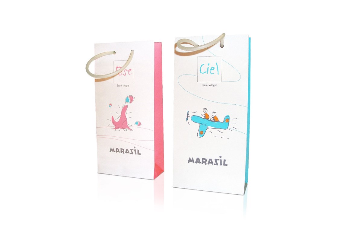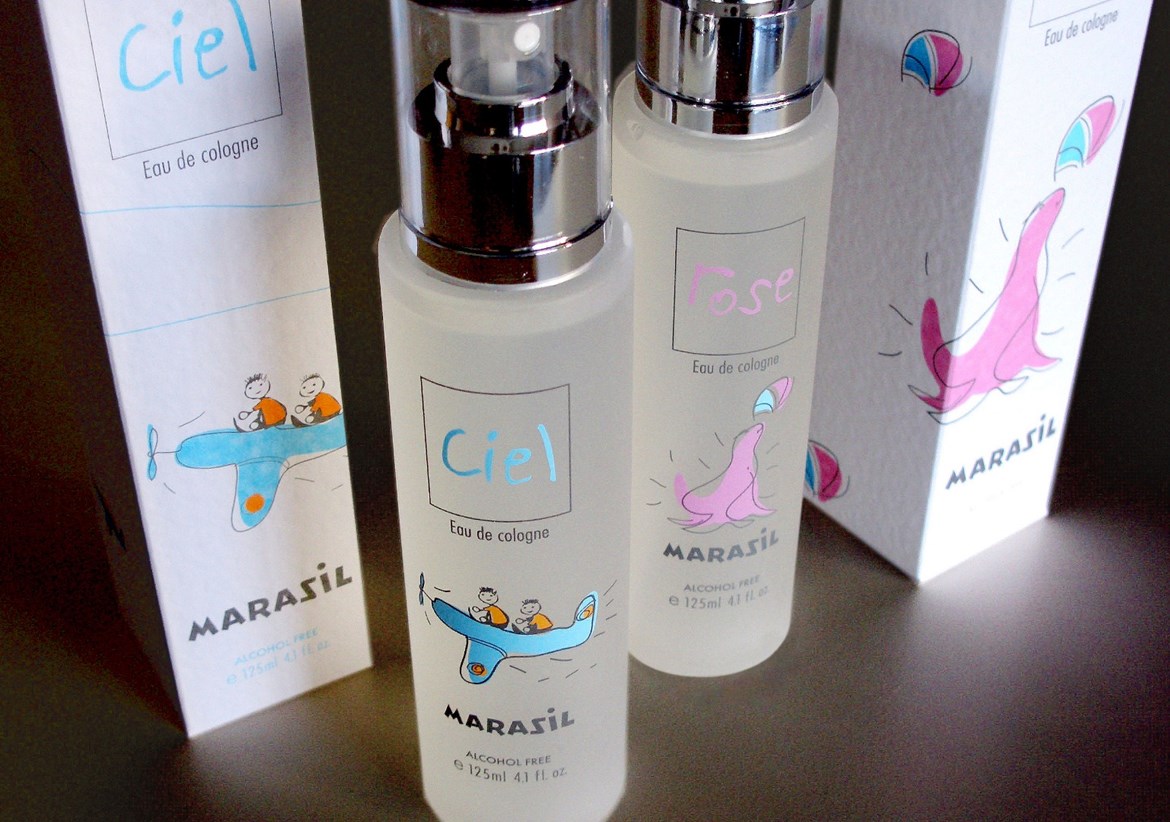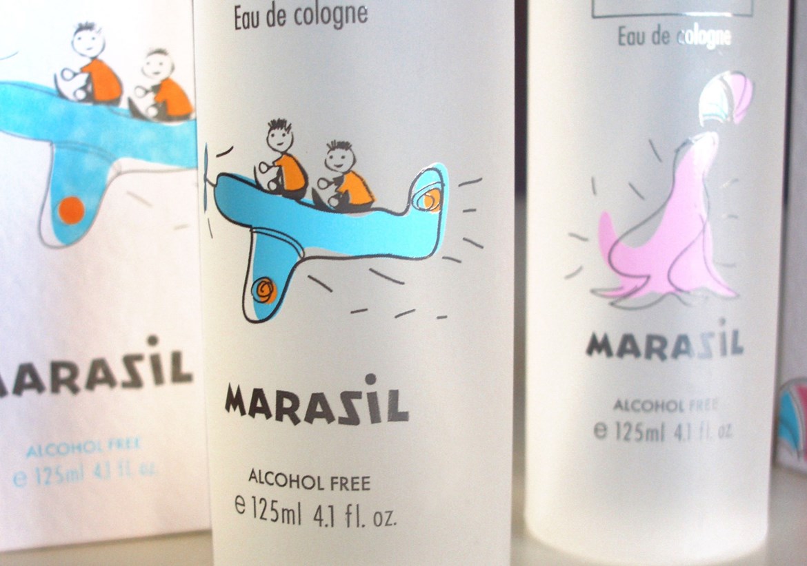 Visual identity, branding & packaging design and p.o.s. material for Marasil, an eau de cologne series for babies.