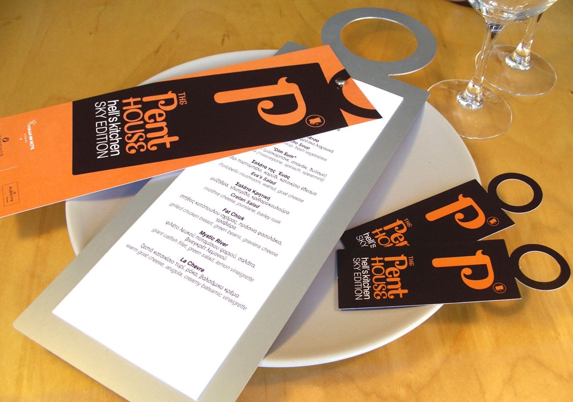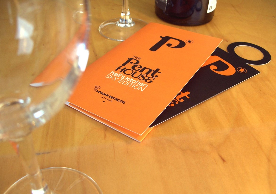 Visual identity & menu design, for Penthouse, a restaurant located in the center of Athens.