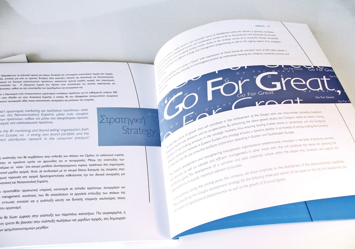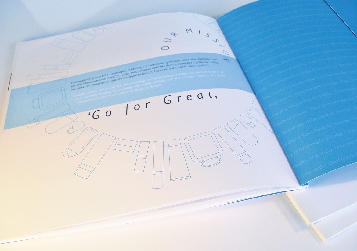 Corporate brochure design for Sarantis. Sarantis is one of the leading consumer products companies in Greece and Eastern Europe.